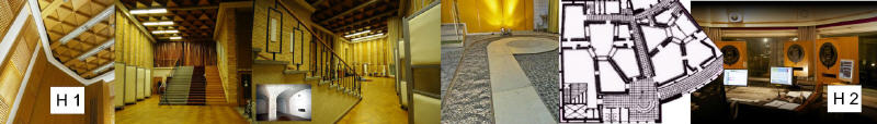 Fotos: © Elisabeth Heller - aufgenommen 2010 und 2015 | ein Collagenfoto © Christian Henke | historische Fotos entstanden kurz vor und nach der Rundfunkabwicklung | Quelle der Kartenskizze unten: Hausarchiv | Überblicksskizze Block B in Anlehnung an eine Skizze aus dem Buch "Der Raum ist das Kleid der Musik" von Gerhard Steinke und Gisela Herzog, Seite 23