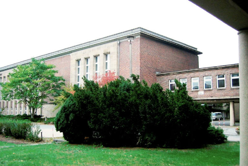 Rechts im Bild: Teile der ehemaligen Rundfunkakademie-Baracken um 2003