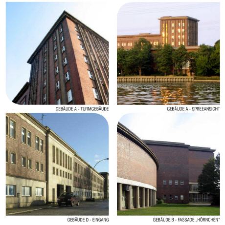 Die einzelnen Gebäudeteile des ehemaligen DDR-Rundfunkzentrums Nalepastraße, die durch unterschiedlich gestaltete, fast brückenartige und teils von Säulen getragenen Übergänge alle miteinander verbunden sind, reihen sich um einen nach wie vor dominant wirkenden Turm des Hauptgebäudes, den so genannten Block A. Siehe auch Grafik auf der Website "Funkhaus Berlin".