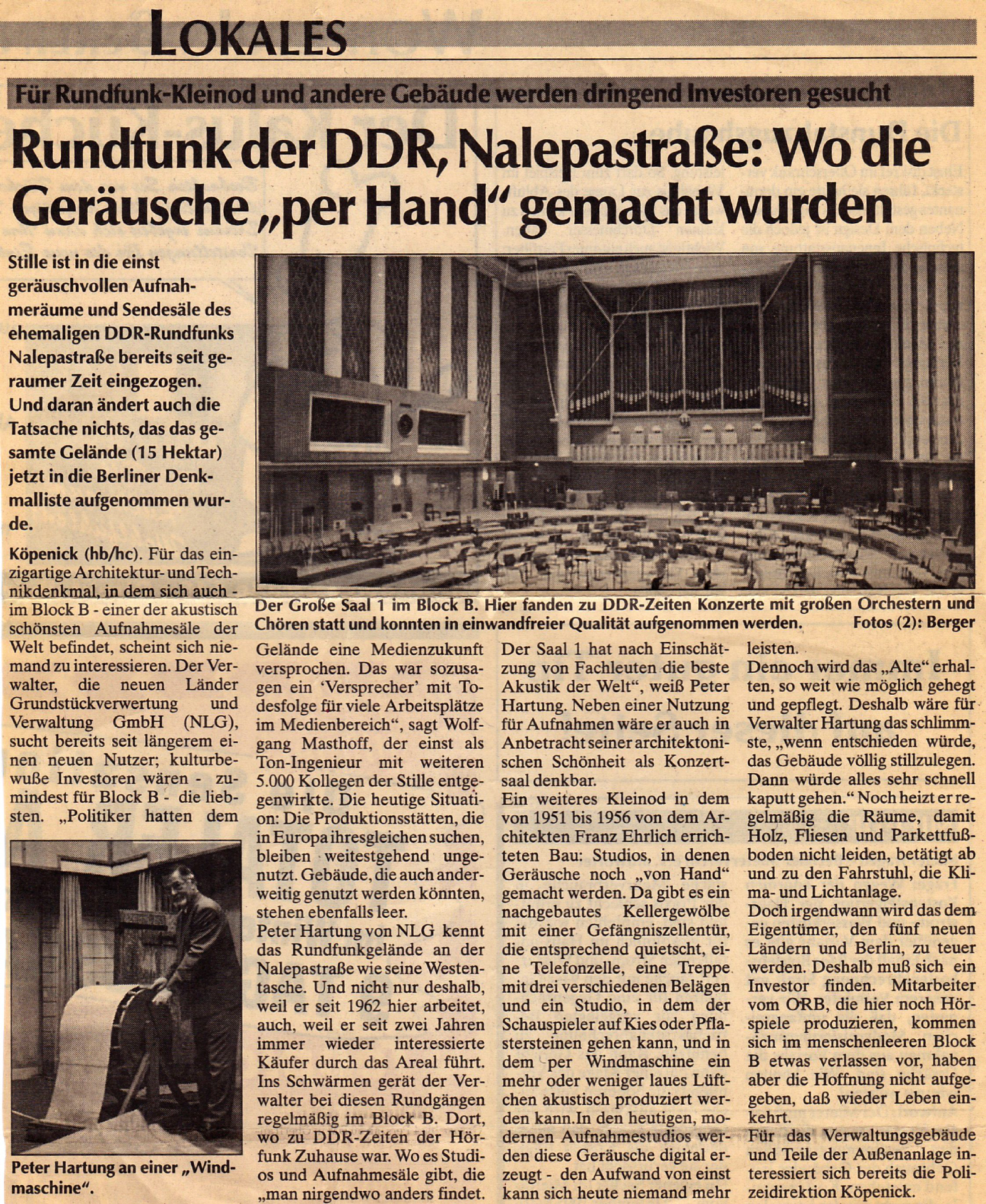 1993 hat der SFBler eine Sendung darüber gemacht, wie der DDR-Rundfunk im Nullkommanix aufgelöst wurde. Er nannte sein Feature "Der andere Kanal" | Nachruf eines Westkollegen auf das DDR-Radio [...]